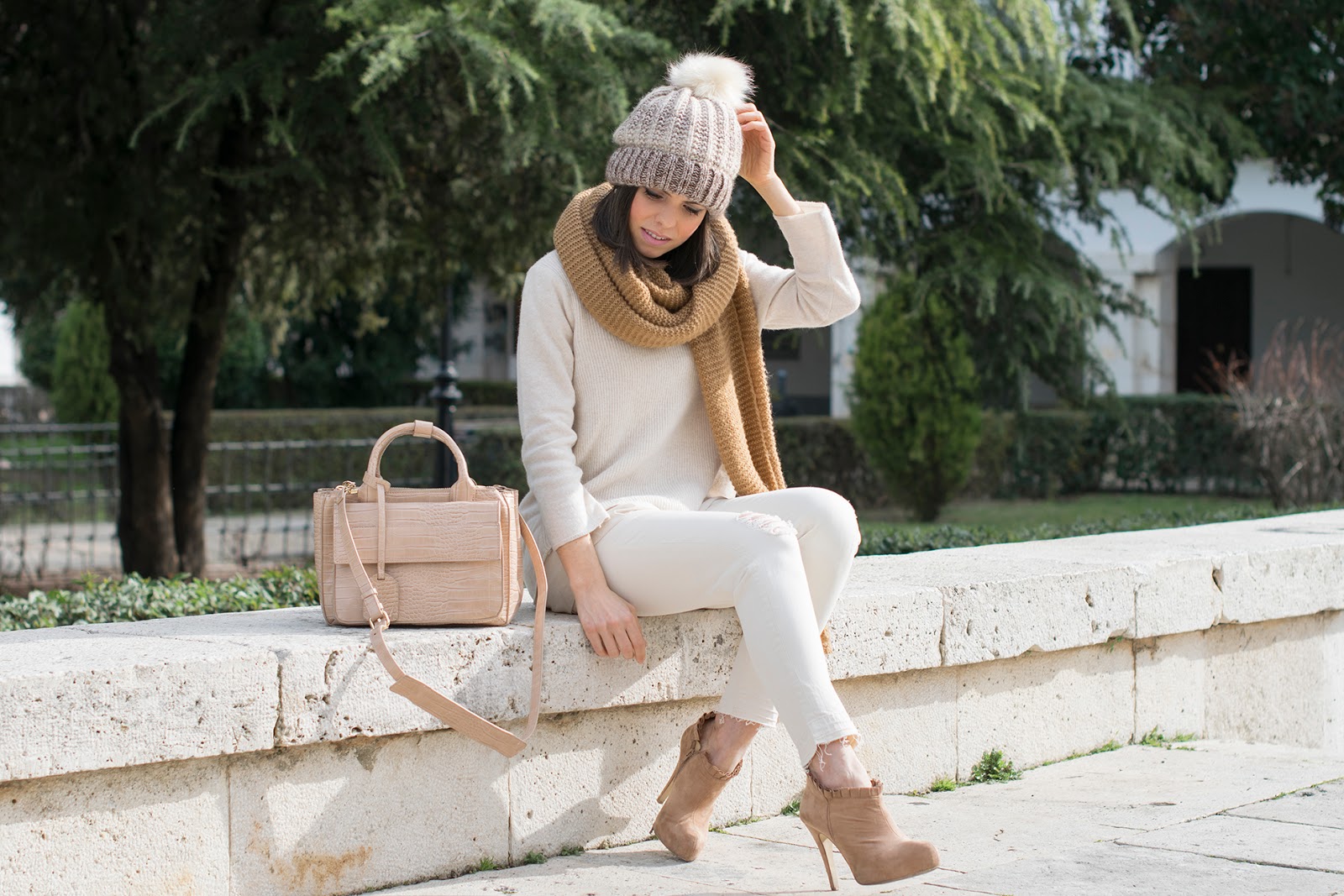 Llevaba ya demasiadas semanas apostando por prendas grises y negras... Tantas, que casi olvido lo mucho que me gustan los looks en tonos nudes. Aportan luz, dulzura, delicadeza, elegancia... y aunque es cierto que me apetecen más en los meses de primavera o verano, este enero tan cálido anima a cualquiera, ¿no os parece? Por eso y para disfrutar de un maravilloso y soleado sábado en familia, nada mejor que este "total nude".
